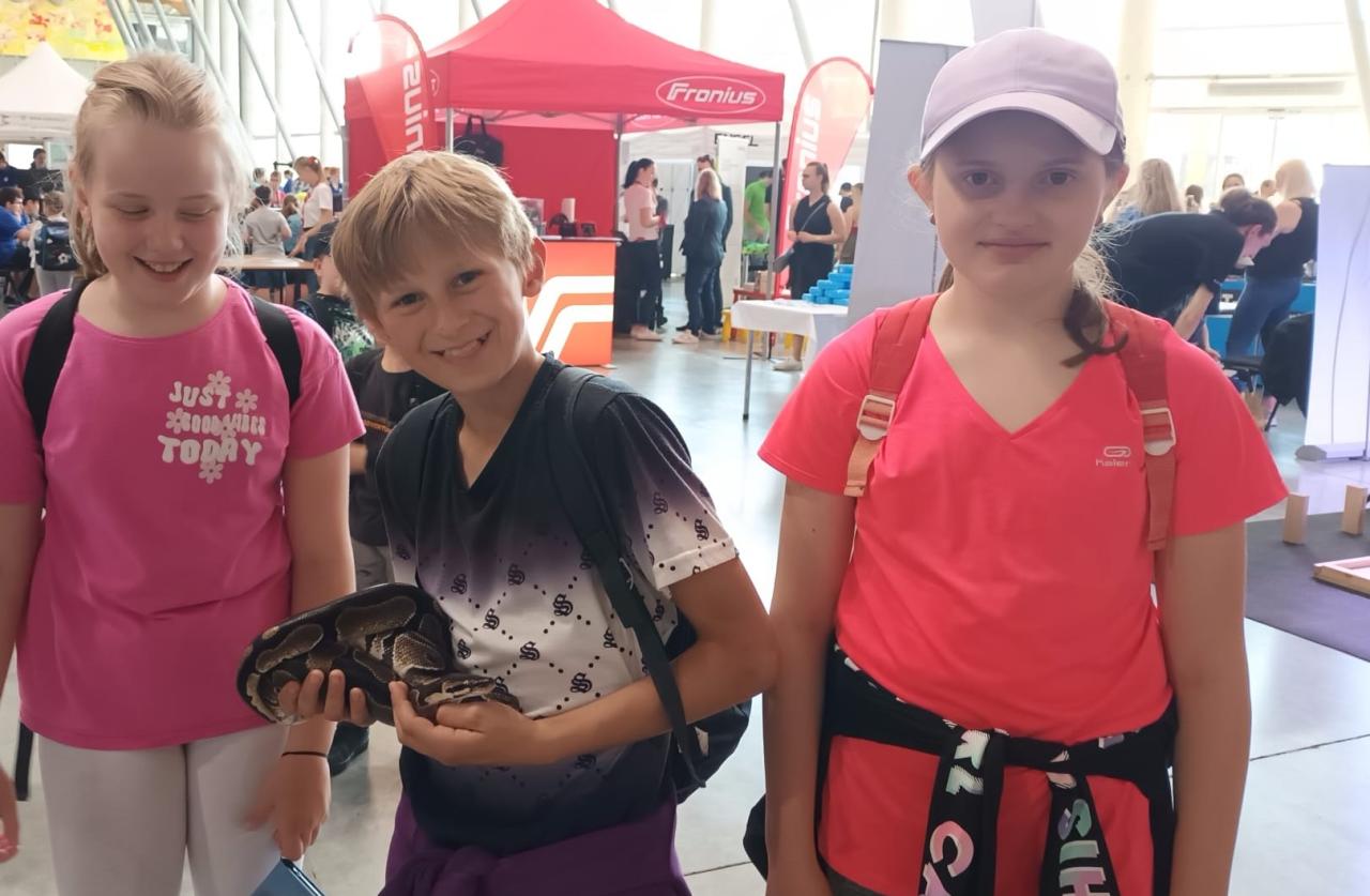 Zhotovili si tak i řadu výrobků, které si odnášeli jako dárečky s sebou. A protože hned vedle probíhala i výstava Řemeslo má zlaté dno, mohli si vlastnoručně ozdobit voňavý perníček, vyrobit vlněného ptáčka nebo něco v kovářské dílně. Navíc se zapojili do chemických a fyzikálních pokusů a ti odvážnější si pochovali i hada.